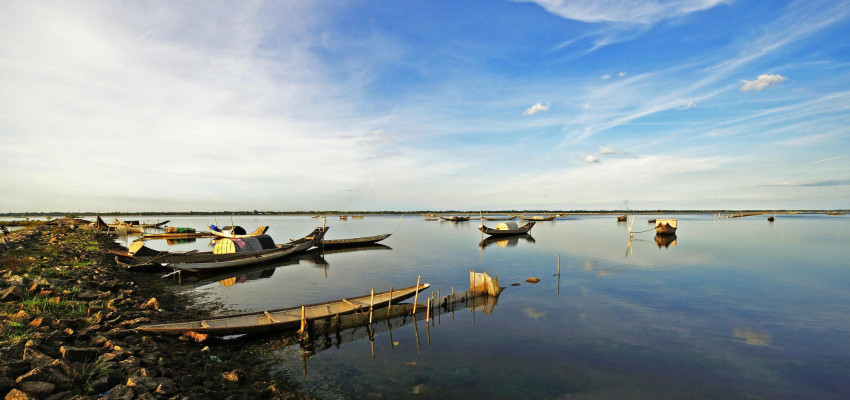 Tam Giang lagoon, one of the biggest and busiest ones in Hue city, is a great inspiration for many writers, poets and musicians to compose wonderful stories, poems and songs. If you are looking for a beautiful and peaceful place to relax or simply to take some pictures to satisfy your sefie passion, come to Tam Giang lagoon. When you come to the lagoon, especially when the sun sets, you will be so amazed at its beauty that you cannot say any words. The sun silhouetted against the water combined with the image of the fishing nets, huts and boats make the lagoon become very peaceful and romantic. There’s nothing interesting than sitting in a boat in the middle of the lagoon, enjoy the fresh air and admiring the picturesque view. It will make your soul comfortable.